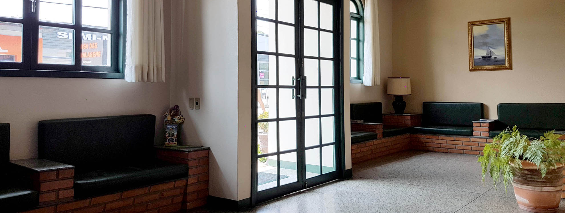 O Hotel possui recepção confortável com sala de televisão à cabo, salão de café da manhã, sala de reunião e atendimento 24 horas.